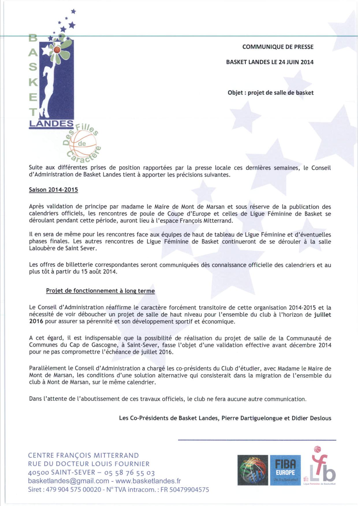 Dès lors, à partir de la saison prochaine, les filles d’Olivier LAFARGUE pourraient également évoluer en coupe d’Europe dans cette enceinte à domicile ainsi que certaines grosses affiches de LFB. Voici le communiqué des co-présidents :