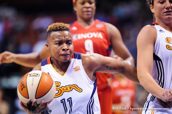 L’an passé, elle avait joué quelques matches avec les Connecticut Sun. Mais c’est surtout chez les Los Angeles Sparks en 2011 que l’ex-pensionnaire de l’Université du Texas à El Paso a emmagasiné le plus d’expérience puisqu’elle y a joué 29 rencontres avec une moyenne de 5 points et 2,2 rebonds en saison régulière.