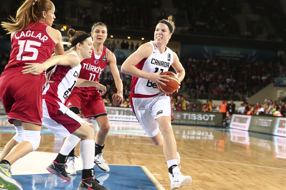 Comme hier, les Turques ont été accrochées par les Canadiennes et Miah-Marie LANGLOIS (5 points). Mais, Nevriye YILMAZ (13 points) a de nouveau remis son équipe dans le sens de la marche pour basculer d’une courte tête à la pause (24-22, 20è).