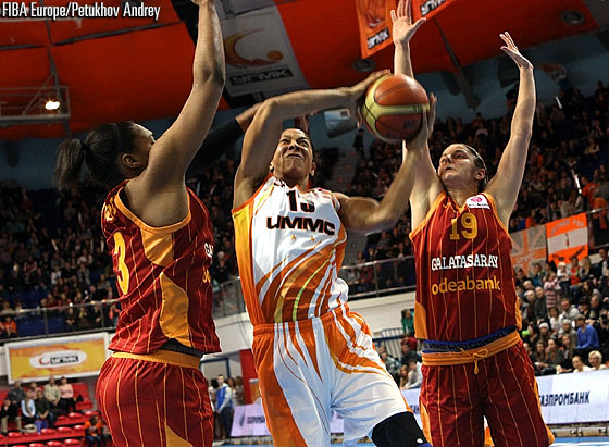 Après la claque reçue la semaine dernière, Galatasaray devait montrer sa vraie valeur sous peine de tendre l’autre joue face à Ekaterinbourg. Les Turques ne sont passées loin de surprendre l’armada russe. En effet, à 3 minutes de la fin, Nevriye YILMAZ (11 points) donne 9 points d’avance à son équipe. Deanna NOLAN, sur deux tirs primés, vient remettre le doute dans les têtes de Jelena DUBLJEVIC (25 points, 8 rebonds). Le match va en prolongation. Au final, Candace PARKER (21 points, 14 rebonds) et ses coéquipières infligent un 5 revers au champion en titre pour qui l’espoir de défendre longtemps son titre s’amenuise de journée en journée.