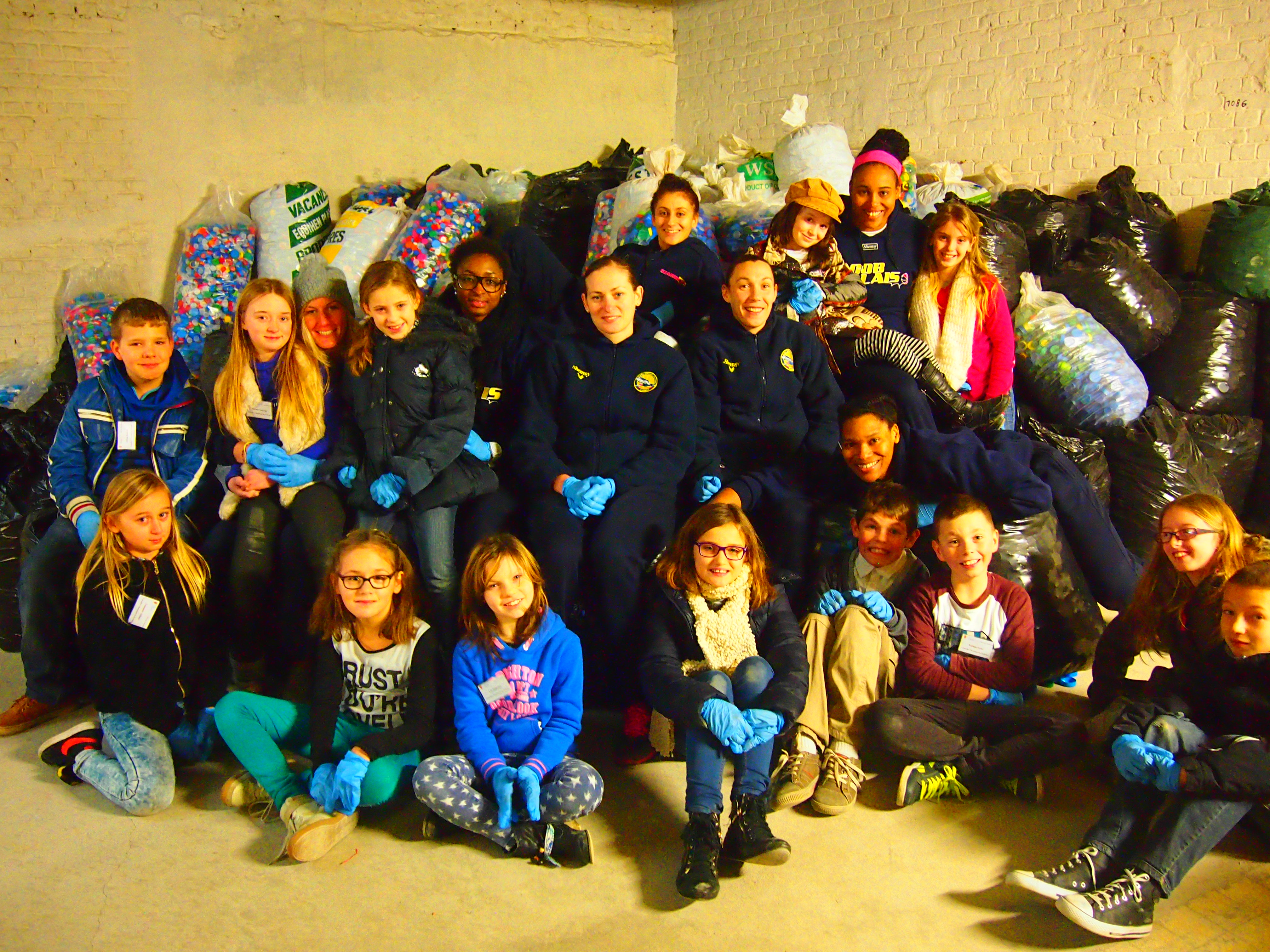 Les filles du COB lors d’un tri des bouchons pour les « Bouchons d’Amour » © COB Calais