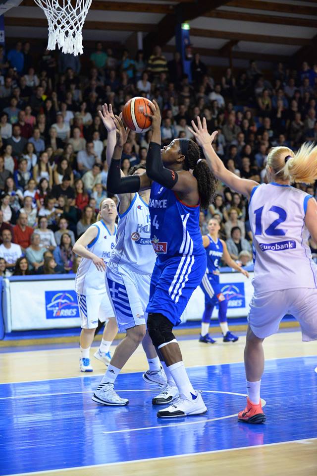 Bien que l’ouverture du score soit Grecque (2-0, 0’8) grâce à un panier de Zoi DIMITRAKOU (15 points, 4 rebonds), il ne faut pas attendre beaucoup plus longtemps pour que Paoline SALAGNAC (7 points, 3 rebonds), devant une salle comble, remette les compteurs à zéro (2-2, 0’14). Lancées, les Françaises imposent leur rythme et s’offrent sans plus attendre quinze points d’avances sur leurs adversaires (23-8, 10′).