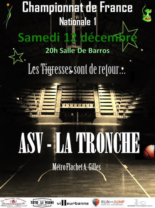 Une fois de plus, le club de Villeurbanne met les petits plats dans les grands pour son opération « Tous à De Barros » ce samedi dès 20 heures. Le but est notamment de remplir la salle Raphaël De Barros, soit 2200 places, promouvoir toutes les équipes du club et surtout passer un très bon moment devant un match de basket féminin.