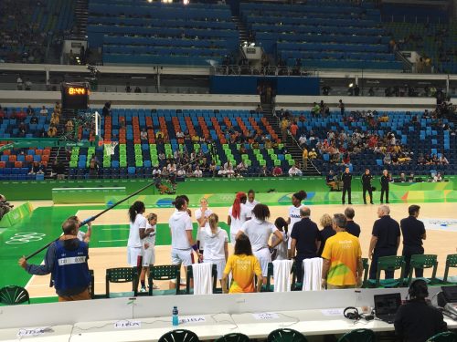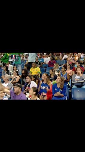 On y est ! L’heure de la demi-finale des basketteuses ! On le sait… La victoire semble impossible, car les filles vont affronter les États-Unis. Et pourtant on y croit !! J’ai cassé la tirelire pour assister à ce match… Normalement assise tout en haut, je me rapproche petit à petit… Pour finir au premier rang derrière le banc français ! On pourra saluer le laxisme des bénévoles 🙂 ! Mais sur ce coup là, je ne vais pas m’en plaindre !! Cela me coutera même une petite apparition à la télé française lors de la diffusion du match, et des dizaines de messages de la part de mon entourage ! Elles nous ont fait rêver, on y a cru, elles étaient si proches, mais en même temps si loin… Un super match, et super souvenir. Quel dommage de voir cependant cette salle vide, lors d’une demi-finale ! J’espère que l’organisation de Tokyo 2020 va s’améliorer sur ce point…