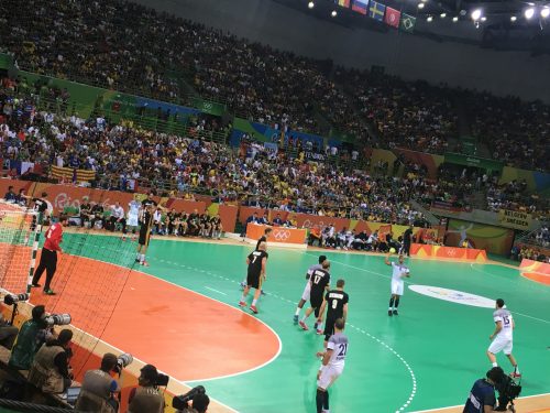 On y est, épisode 2 ! Jour de demi-finale, mais on change de sport et on change de sexe. Encore une fois je me fait un petit plaisir et je m’achète un billet pour le handball. Après les filles la veille, au tour des gars d’essayer de décrocher leur billet pour la finale olympique ! Quel match de dingue !!!!!!! Pour ceux qui n’ont pas suivi, ou qui ne se rappelle plus… 28-28 à 8 secondes de la fin. Et Daniel NARCISSE nous colle un but à deux secondes du temps additionnel ! ÉNORME ! Ils ont en plus la chance d’être suivis par un sacré groupe de supporters qui met l’ambiance à tous leurs matches. Les Allemands aussi sont accompagnés de beaucoup de supporters, le match se fait donc sur le terrain, et dans les tribunes… Et vu la tête des supporters allemands à la fin du match, je crois bien que le combat a été gagné également dans les gradins (rires) ! En rentrant, les Brésiliens me voyant avec le drapeau français sur le dos me lancent des : « J’aime la France ! », « Allez les Bleus », et j’en passe… C’est fou de voir le fanatisme des Brésiliens pour la France !!!