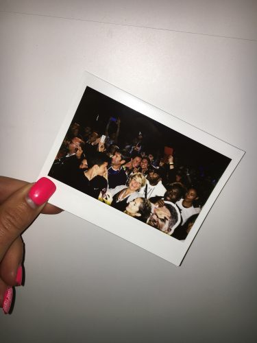 L’histoire avec Kentin MAHÉ est plutôt rigolote. Lors de la présentation sur le podium de toute l’équipe masculine de handball, il est en possession d’un appareil photo Polaroïd et il s’amuse a prendre le public en photo. Avec mon amie bénévole, nous essayons de l’interpeller pour une photo, il va donc nous prendre en photo et en plus de ça, nous donner la photo dans la foulée… Petit geste sympathique !