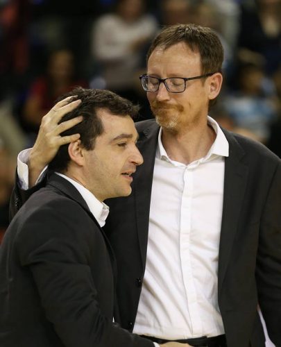 Ce vendredi, comme il l’a dit en conférence de presse, l’essentiel n’était pas vraiment le score du match entre Basket Landes et Mondeville (76-79) pour Olivier LAFARGUE. Car au terme de cette rencontre, qui pourrait être sa dernière sur le banc landais avant de prendre la direction de Bourges, le coach originaire d’Aire-sur-l’Adour a vu son public, ses joueuses, sa famille et ses dirigeants (tout le monde ou presque portait un tee-shirt « Merci Olive ») lui rendre un très bel hommage pour ses 13 saisons passées à St Sever puis Mont-de-Marsan. Il les a remerciés à sa façon et y a d’ailleurs associé sa capitaine Julie BARENNES, qui va désormais porter la casquette d’assistante-coach sous la direction de Cathy MELAIN :