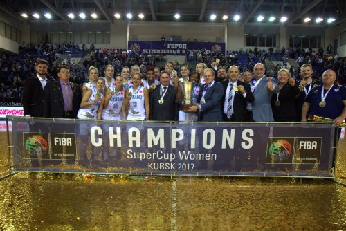 Elles l’ont fait ! Après avoir remporté l’Euroligue la saison dernière, les joueuses de Koursk ont remporté hier soir devant leur public la Supercoupe d’Europe. Sous l’impulsion d’une des recrues estivales Sonja PETROVIC (20 points, 10 rebonds), les protégées de Lucas MONDELO ont rapidement montré les crocs (19-14, 10′). Mais en face, Quanitra HOLLINGSWORTH (19 points, 6 rebonds) et l’Université Yakin Dogu, qui avaient décroché la dernière édition de l’Eurocoupe, ont redressé la tête avant la pause pour repasser devant (40-43, 20′).