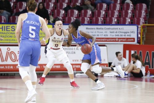 Jamais, les Landaises n’ont été en mesure de récupérer le déficit de 9 points du match aller. Dès la fin du premier quart (20-13), les Vénitiennes ont mis fin à tout suspense. Elles enfoncent même le clou avant la pause (+17, 41-24). Durant ces 20 premières minutes, l’actuel leader du championnat transalpin a fait preuve d’une puissance à l’image de leur domination aux rebonds (41-28) que les joueuses de Basket Landes n’ont pu endiguer. Ce domaine du jeu (19 points sur deuxième chance) ainsi que les 41 points du banc italien donc 11 pour Cyesha GOREE ont donc eu raison des joueuses de Cathy MELAIN, honorée avant le match, elle qui a porté le maillot du Reyer entre 2003 et 2005. Ce match aura-t-il été le dernier en coupe d’Europe de Céline DUMERC (16 points, 5 passes) ?