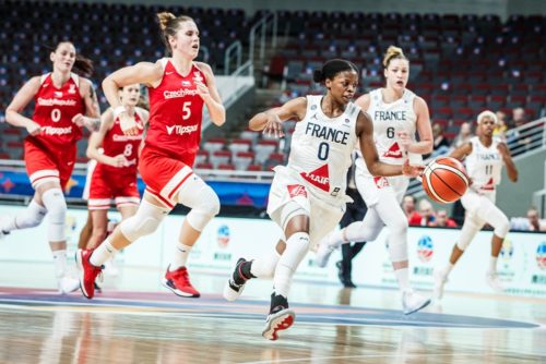 Trois premiers points de Marine FAUTOUX (53-52), les interceptions se multiplient côté Bleues : cette fois-ci, c’est Marianne BADIANE (1 interception) qui s’y colle : 56-54 Bria HARTLEY prend feu et trouve la faille dans les intentions défensives tchèques. Et de l’autre côté, les Tricolores étouffent leur adversaire. A cinq minutes du terme, 60-54, les Tchèques repassent en zone histoire de brouiller les cartes mais Marine JOHANNES (9 points, 2 rebonds) à trois points trouve la solution. Plus que deux minutes de jeu 65-61, la fatigue tchèque liée à son manque de rotations est maintenant évidente. L’équipe de Stefan SVITEK multiplie les erreurs et offre un boulevard aux Françaises à l’image d’Olivia EPOUPA qui, avec un nouveau tir longue distance à 0 degré, permet à son équipe de mener 71-61 à 45 secondes du terme. Score finale 74-61. Sans trembler ni s’énerver, les Tricolores font le travail avant de rencontrer le Monténégro demain et la Suède dimanche.