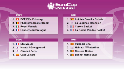 A l’issue du tirage de l’Eurocoupe, deux de nos représentants se retrouveront dans le Groupe F, Les Flammes Carolo et La Roche-Vendée où ils auront une belle carte à jouer. Les « Guerrières » de l’ESBVA-LM auront une belle affiche avec les Espagnoles de Cadi La Seu, entre autres, tandis que St Amand, s’il franchit le cap des barrages retrouvera les Castors de Braine et les ibères de Valence. Et pour sa première participation, Landerneau Bretagne Basket hérite d’un gros morceau, Venise, mais aussi des Suissesses d’Elfic Fribourg et d’une belle équipe belge de Phantoms Boom, qui sort d’une saison convaincante au niveau national.