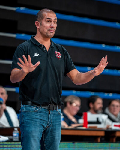 Le technicien vendéen se félicite de la victoire de ses joueuses © La Roche-Vendée Basket Club