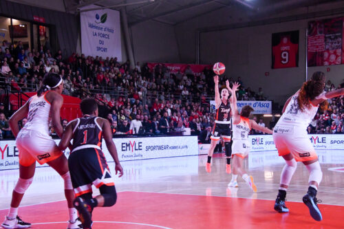 Un peu plus tard dans l’après-midi, le deuxième choc du jour a tenu toutes ses promesses entre Charleville-Mézières et Villeneuve d’Ascq. Après un round d’observation dans le premier quart-temps (20-22, 10′), ce sont les Carolomacériennes qui, sous la houlette de leur capitaine Amel BOUDERRA qui a tout donné (11 points, 14 passes décisives) le jour de ses 34 printemps, ont su prendre un ascendant psychologique avant la pause, même si celui-ci paraissait fragile (38-34, 20′). Tellement fragile qu’au retour des vestiaires de la Caisse d’Epargne Arena, c’est le trio composé de Kennedy BURKE (18 points, 11 rebonds), Kamiah SMALLS (17 points dont 3/6 à 3 points) et Hind BEN ABDELKADER (14 points dont 4/7 à 3 points) qui a permis de remettre l’ESBVA-LM sur les rails et même de compter jusqu’à 13 points d’avance au milieu du troisième quart-temps (38-51, 25′) pour conclure celui-ci à +4 (53-57, 30′). Poussées par leur public, les Flammes emmenées par Victoria VIVIANS (18 points, 5 rebonds) et Brianna FRASER (17 points, 7 rebonds) n’ont rien lâché et ont toujours mis la pression sur les Nordistes mais dans les dernières secondes, Kamiah SMALLS n’a pas tremblé sur la ligne des lancers alors qu’en face, alors qu’elle pouvait remettre les 2 équipes à égalité en tentant sa chance à 3 points, Shay COLLEY (8 points, 2 rebonds) est partie en lay-up, qu’elle a finalement manqué, laissant les Guerrières revenir des Ardennes satisfaites.