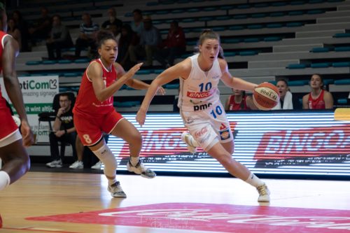 En revanche, et comme c’est le cas en championnat depuis le début de saison, Braine s’est baladé devant son public. Face à Courtrai, Nastja CLAESSENS (20 points, 5 passes décisives) et les siennes ont en effet écrasé la concurrence dès l’entame (60-22, 20′). Elles n’ont eu ensuite qu’à contenir l’adversaire à une distance raisonnable, même si Cylia DUCOULOMBIER (15 points, 6 rebonds) et les Courtraisiennes ont montré de belles choses au retour des vestiaires. En milieu de tableau, bonne opération pour Lummen. A la maison, les protégées de Thomas JOHNSON ont vite pris le meilleur sur une équipe de Charleroi en manque d’agressivité défensive (22-12, 10′). Par la suite, Lynn HERING (16 points, 5 rebonds) et ses partenaires du CEP Ladies (c’est le nouveau nom du club de Charleroi) ont su montrer un autre visage mais elles sont retombées dans leurs travers en fin de partie, laissant Janiek VAN VEEN (34 points, 5 rebonds) and co. finir le boulot. Hier après-midi, il n’y a eu que peu de suspense entre Kangoeroes Malines et Phantoms Boom. Pourtant, les Malinoises ont été malmenées d’entrée (18-19, 10′) par un adversaire très motivé, à l’image de Sophie VAN HOOF (15 points, 2 rebonds) mais aussi An-Katrien NAUWELAERS, en grande forme face (14 points, 14 rebonds face à sa soeur Heleen (8 points, 4 rebonds). Sans trembler, les coéquipières de Laure RESIMONT (17 points, 3 rebonds) et Cate REESE (19 points, 11 rebonds) ont remis la main sur le ballon ensuite (26-11 dans le deuxième quart-temps) et n’ont plus jamais baissé pavillon pour disposer assez logiquement d’un vis-à-vis qui n’a pas à rougir.