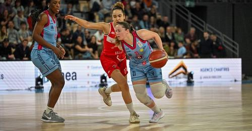 Dans sa nouvelle salle, Le Colisée, Chartres aussi a eu un match facile contre La Tronche-Meylan. Mis à part le début de match tonitruant d’Oumou DIARISSO (6points, 10 rebonds) avec 4 points et autant de rebonds pour mettre les visiteuses devant (2-7, 2ème), l’adresse mi distance des Chartraines a fait un malheur pour revenir au score et passer vite devant (18-12, 10ème). La Tronche-Meylan perdait ensuite Jade PHILLIPS suite à un choc tête contre tête pour le reste du match. Pendant ce temps-là, Emma PEYTOUR (18 points à 4/7 de loin, 8 rebonds) faisait admirer son adresse longue distance (36-23, 20ème). Le troisième quart sera défensif : aucune équipe ne marquera pendant 4 minutes avec beaucoup de possessions perdues pour violation des 24 secondes! Ce statu quo profitant bien-sur à Elise MARIE (11 points, 5 rebonds 4 passes) et Chartres. Durant toute la seconde période, les Iséroises ne reviendront jamais à moins de 10 points. Le retour s’annonce ardu si Jade PHILLIPS ne sera pas en soutien d’Aurore PAUTOU (15 points, 4 rebonds, 4 passes).