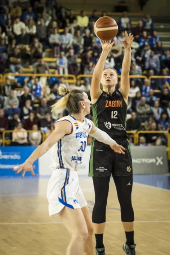 Laura JUSKAITE, ici lors d’un match d’Euroligue, a mené le Zabiny Brno à la victoire © FIBA Europe