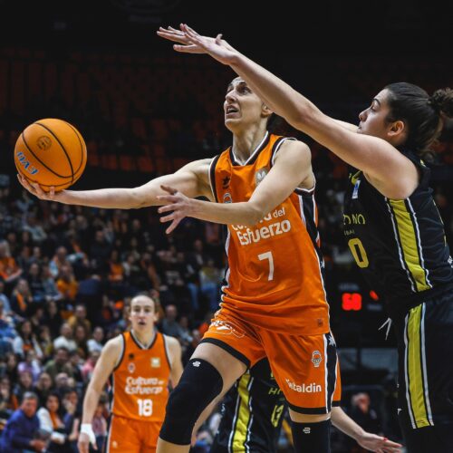 Plus proche de nous, il y avait un choc entre prétendant au titre avec Gérone qui recevait Valence. Comme attendu, ces deux grosses écuries ont montré de jolies choses dès le coup d’envoi (25-26, 10′). Mais quelques jours après sa déconvenue sur le parquet de Jairis (73-70), Valence se devait de réagir et c’est ce qui s’est produit de manière magistrale avec une Alba TORRENS qui a retrouvé de sa superbe (17 points dont 3/5 à 3 points) pour contribuer à ce que son équipe passe un 12-29 dans le deuxième quart. En face, Mamignan TOURE (16 points, 3 rebonds en 25 minutes) a tenté de relancer ses troupes mais celles-ci ont manqué d’énergie et, surtout, n’ont pas su contrecarrer les plans du leader et champion en titre. En revanche, les jours se suivent mais ne se ressemblent pas pour Jairis qui, cette fois, a été dans le rôle de l’arroseur arrosé en chutant sur le parquet du Baxi Ferrol, qui a le vent dans le dos en ce moment. Les deux formations ont pourtant été longtemps au coude à coude avec, d’un côté, Claire MELIA (16 points, 2 rebonds) et, de l’autre, Morgan BERTSCH (19 points, 5 rebonds). Il a ainsi fallu aller jusqu’en prolongation pour les départager et durant celle-ci, les Galiciennes ont retrouvé un second souffle pour tirer leur épingle du jeu. Notons que Lou LOPEZ-SENECHAL n’a pas marqué mais a capté 3 rebonds et délivré 1 passe décisive en 20 minutes dans ce match.