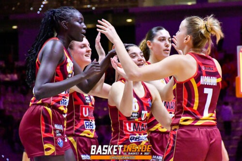 Le 1er quart-temps allait commencer doucement au niveau du tableau de marque, car les deux équipes possédaient des défenses déjà bien au rendez-vous. Après presque 2 minutes 30 sans le moindre point, Venise lançait les hostilités et Campobasso répondait immédiatement. Les partenaires de Blanca QUINONEZ (15 points, 2 passes) pensaient mener la danse (8-12), mais Venise a bien fini et le score était de 18-14 au terme du 1er quart-temps. La Française, Lisa BERKANI (13 points, 3 rebonds), donnait 9 longueurs d’avance à son équipe dans le début du 2ème quart-temps après une bombinette de loin (23-14). Campobasso allait exceller dans cet exercice avec un 5 sur 7 produit sur cette période. Les coéquipières de Sara SCALIA (19 points, 3 rebonds) allaient réussir à repasser devant (32-33), avant de voir Venise reprendre les commandes jusqu’à la mi-temps (44-38). Au retour des vestiaires, les joueuses d’Andrea MAZZON ont repris une avance plus confortable en atteignant même le plus gros écart du match +13 (56-43). Mais Campobasso n’a pas fini 3ème par hasard, et nous avons pu observer une série de 11-0 infligé par les partenaires de Pallas KUNAIYI-AKPANAH (8 points, 15 rebonds) qui a provoqué une faute technique de Beatrice MOMPREMIER (7 points, 2 rebonds) et cela a contribué au retour en force des visiteuses (56-54). Cette grosse fin de 3ème quart-temps a mis un bel avertissement à Venise qui se retrouvait un peu plus sous pression, car à 6 minutes 13 de la fin du temps réglementaire, il y avait bien +4 pour Campobasso (59-63). Les possessions, qui ont suivi, ont permis à Lorela CUBAJ (12 points, 17 rebonds) et ses coéquipières de vite revenir et même de prendre le contrôle du match (64-63). La machine de Campobasso était enrayée dans ce moment crucial du match et Venise n’a pas tremblé pour sécuriser un premier succès à la maison dans cette série.