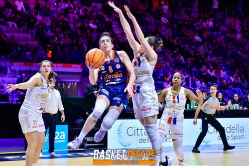 Les deux premiers matchs de cette demi-finale se joueront à Schio et les partenaires de Costanza VERONA (14 points, 8 passes) ont connu un début de match pas si évident, bien gêné par la défense agressive de San Martino. Un score de 10 partout était obtenu après près de 7 minutes de jeu, San Martino et Caterina GILLI (11 points, 2 rebonds) parvenaient à repartir avec un +2 en poche au terme du 1er quart-temps (13-15). Le mano à mano allait se poursuivre dans le 2ème quart-temps avec deux formations qui enchaînaient les paniers. Une joueuse de San Martino s’est particulièrement illustrée sur cette 1ère mi-temps, Anne SIMON (17 points, 4 rebonds), déjà auteure de 16 points à la mi-temps. Schio rejoignait les vestiaires avec l’avantage, mais tout restait à confirmer dans le deuxième acte. D’ailleur les choses n’ont pas traîné pour les partenaires de Futo ANDRE (14 points, 7 rebonds) qui ont produit un 14-0 en début de 3ème quart-temps (50-34). Submergé, San Martino allait s’en remettre à son adresse longue distance qui lui a permis de rester à -14 au terme de 30 minutes jouées (62-48). La machine offensive de Schio était bien enclanchée et nous pouvions observer Kitija LAKSA (12 points, 4 rebonds) inscrire 9 points en 90 secondes. Dans le 4ème quart-temps, l’écart est allé au-delà des 20 points d’avance pour Schio qui a obtenu une victoire solide pour ce match 1.
