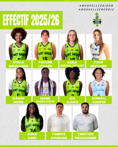 Un recrutement ronflant pour les Nordistes. L’arrivée, en voisine (Aulnoye-Aymeries) de Fleur DEVILLERS (2 fois dans le 5 majeur de Ligue 2 ces 2 dernières saison et meilleur marqueuse cette saison) et celle de Kendall COOPER, MVP 2024 de Ligue 2 qui arrive de Chartres (LBWL) sont de nature à faire espérer les supporters des Green Girls. Mame GUEYE (22 ans) qui sort d’une saison à 18 minutes avec le promu Le Havre, complète la colonne des arrivées.