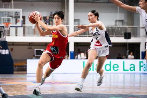 La France démarre le match avec un cinq majeur composé de ROUSSELIERE, SIMPLOT, TOURNEBIZE, OTTO et LERAY. Ce choix tactique ne porte pas ses fruits immédiatement et le jeu espagnol connu et reconnu mondialement pour ses qualités d’agressivité et de vitesse va considérablement gêner l’équipe de France. Des mains actives, des lignes de passes coupées et du jeu rapide font la force de l’équipe ibérique, et cela paye dès le premier quart-temps (19-16). Les espagnoles qui choisissent régulièrement de passer sous le poseur d’écran lors des pick and roll privent les françaises de munitions et de jeu intérieur. Emma BROLIRON (15 points, 5 passes) est active et agressive, mais cela ne suffit pas à contenir Sara OKEKE (14 points, 8 rebonds) et ses coéquipières qui déroulent dans ce second quart-temps (22-15). Avec dix points de retard à la pause (41-31), il n’y a pas encore le feu, mais il faudra montrer plus de justesse et d’agressivité dans le jeu français. Et c’est ce qui va se produire à la reprise : les Espagnoles commettent des erreurs inhabituelles dans le jeu rapide ou sur les montées de balle, fortement gênées par la pression des blanches. Alicia TOURNEBIZE trouve enfin la mire (7 petits points ce soir). Katty-Emma OTTO effectue un gros travail près du cercle et au rebond. Cette bonne dynamique ramène l’équipe de coach BOURDEAU à – 7 à 10 minutes de la fin et même à – 1 à 7 minutes de la fin. La suite du match sera « caliente » ou cette diablesse de Gina GARCIA (15 points et surtout 9 passes) va se régaler soit pour scorer soit pour trouver une Mireya SANZ (13 points) décisive. Ines MONJE se montre au plus mauvais moment en scorant à 3 points à 2 min 30 de la fin. Ce tir porte l’écart à +8 et donne un coup au moral français. Emma BROLIRON tentera de faire le maximum, et elle réduit l’écart à 5 points à 1 m 40 de la fin. Les Espagnoles seront lucides et ne craqueront pas sous la pression en fin de match et s’imposeront de 6 points au final (71-65). Il faudra retrouver le moral et l’envie pour affronter la Belgique et ramener une médaille de bronze, afin de ne pas reproduire le même parcours que leurs « grandes soeurs » et se retrouver bredouilles. Le basket est un sport d’adresse où l’on ne peut pas gagner avec 44 % au lancer-franc et 27 % à trois points.