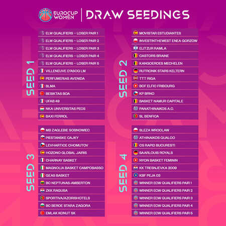 Placés dans le Chapeau 1, Villeneuve d’Ascq qui est le tenant en titre, l’UFAB 49 d’Angers et le BLMA vont éviter les clubs qui seront écartés de la course pour les phases de poules d’Euroligue. Nous pourrions donc éventuellement retrouver le Tango Bourges Basket, même si l’objectif du groupe d’Olivier LAFARGUE est de rejoindre la plus prestigieuse Coupe d’Europe. Également dans ce premier groupe de clubs, on retrouve Salamanque, qui était engagé en Euroligue l’an dernier, et aussi Besiktas qui a recruté des visages connus dans l’hexagone avec Amy OKONKWO et Lisa BERKANI notamment. Avec au moins 20 pays différents représentés sur cette Eurocoupe 2025-2026, il se pourrait bien qu’il y est des déplacements longs et périlleux à venir, d’autant que les rencontres sont disputées en milieu de semaine. Pour le quatrième représentant français, directement qualifié, il y a également Charnay qui a été positionné dans le Chapeau 3. Pour rappel, cet ordre est déterminé selon le classement européen du club sur les trois dernières saisons en Coupe d’Europe. Dans le Chapeau 4, il y aura cinq formations qui rejoindront la compétition après des qualifications, dont figurait initialement potentiellement le LDLC Asvel Féminin, mais le club du Rhône s’est retiré pour raisons financières.
