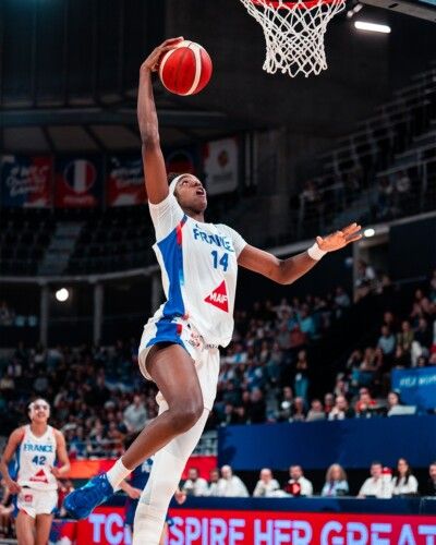 Hier soir, dans la large victoire de l’équipe de France face aux Philippines (115-66), Dominique MALONGA s’est illustrée à plusieurs titres. D’abord parce qu’après avoir disputé la ligue 3×3 Unrivaled, elle a montré qu’elle avait vite repris ses marques dans la discipline du 5×5. Ensuite, parce que cela s’est traduit par une ligne statistique impressionnante (21 points à 73% au shoot et 9 rebonds en 19 minutes pour 30 d’éval.). Et enfin parce que, dans le deuxième quart-temps, l’ex-Lyonnaise a fait se lever le public de l’Astroballe en devenant la première joueuse de l’équipe de France sénior à marquer un panier sur un dunk :
