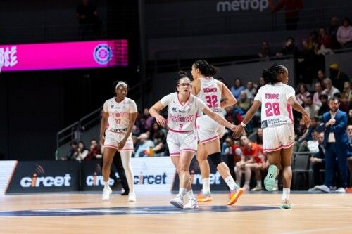 L’autre équipe qui a bien débuté ses Playdowns s’appelle Toulouse, qui a globalement bien maîtrisé son match à domicile contre la Roche-Vendée. Avec des effectifs amoindris, les deux coachs ont tout de même pu compter sur plusieurs joueuses étrangères qui ont fait le « show ». A l’image de la fin de match de Juicy LANDRUM (21 points, 2 contres), les Tigresses avaient des arguments à faire valoir, malgré l’absence de la capitaine Laura EVRARD, depuis plusieurs matchs déjà. Après un 4-7 pour démarrer, le TMB a plutôt très bien répondu, avec un 12-0 qui mettait les coéquipières de Taya REIMER (13 points, 6 rebonds) en pôle position (16-7). L’Intérieure parvenait à se faire de la place, et les Pionnières ont gagné ce 1er quart-temps de 10 points (22-12). Dans le camp d’en face, Rita IGBOKWE (8 points, 12 rebonds) a également posé des problèmes à Toulouse, avec sa taille, qui lui a permis d’obtenir des paniers derrière des rebonds offensifs. Un temps revenu à -6 (24-18), Roche-Vendée allait reprendre la tasse, et nous avions les partenaires de Fatoumata TOURE (12 points, 4 rebonds) qui ont repris un marge d’avance plus confortable (34-22). Avec 34 % de réussite à la mi-temps, les joueuses de David GAUTIER étaient prises à défaut, par notamment la plus grande réussite Toulousaine, qui a également obtenu 13 interceptions sur la partie. Les deux formations ont retrouvé les vestiaires, avec un écart de 16 points (43-27). Le TMB est reparti pied au plancher sur la 2ème mi-temps, avec la combativité de Jessica LINDSTROM (7 points, 16 rebonds) qui a fait un gros match. Stella JOHNSON (14 points, 8 rebonds), de l’autre côté, a aussi tenté de ramener ses coéquipières en-dessous des 10 points de retard, mais la pression des Pionnières s’est accentuée, avec un écart qui a dépassé les 20 points après 30 minutes de jeu (65-43). Les 10 dernières minutes du temps réglementaire ont été plus brouillonnes pour Toulouse, avec une attaque plus statique, qui n’a réussi à trouver des solutions. Les percussions d’Hortense LIMOUZIN (14 points, 6 interceptions), puis le gros match d’attaque de Trinity SAN ANTONIO (18 points, 4 passes), avaient permis de se mettre à l’abri, et malgré la fin de match à l’avantage de la Roche-Vendée, le résultat était acquis en faveur des Toulousaines. Grâce à ce succès, le TMB prend la tête de ces Playdowns.