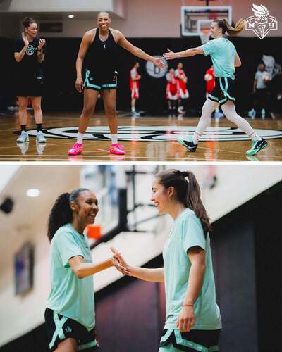 Nous pouvons observer la présence de Marine FAUTHOUX, la Française a le sourire à l’approche de son retour à la compétition © New York Liberty