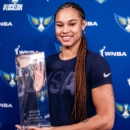 L'ailière allemande a reçu son trophée © Dallas Wings Belle mise à l'honneur pour Satou SABALLY ! L'ailière des...