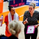 Julie BARENNES donnant ses premières consignes aux Pays-Bas lors de leur victoire face à l'Irlande © FIBA Europe...