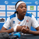 Suite à la rencontre entre Basket Landes et Bourges (68-55), l'ailière landaise Myriam DJEKOUNDADE, la meneuse...
