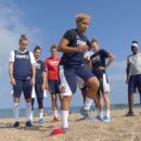 Aujourd'hui, c'était musculation pour les joueuses de l'équipe de France, puis exercices sur la plage d'Anglet,...